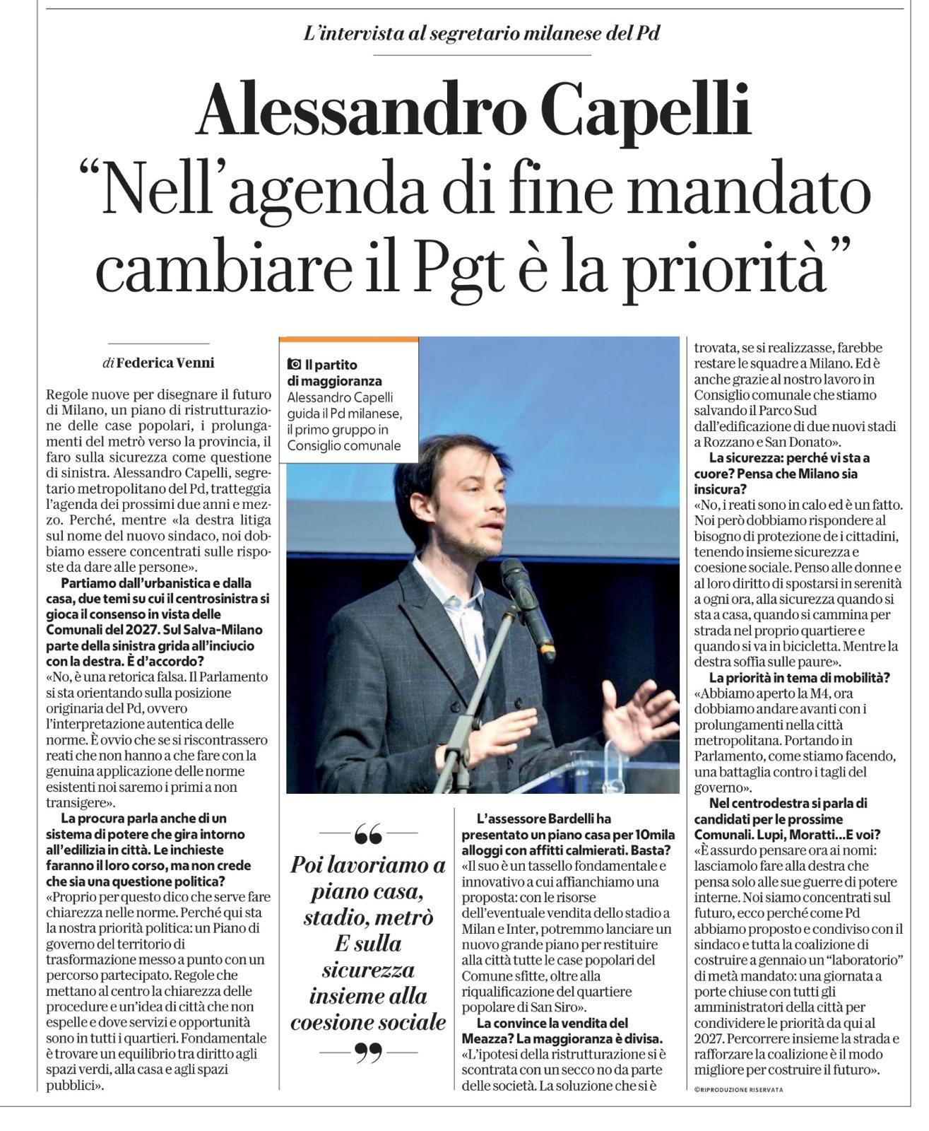 Capelli prosegue: "Negli scorsi giorni, anche grazie all’incessante lavoro della nostra capogruppo Beatrice Uguccioni, il Consiglio Comunale di Milano ha approvato l’ordine del giorno del PD sul futuro dell'area dello stadio di San Siro. In tutti questi mesi ci siamo battuti per salvare il Parco Sud dall’edificazione di due nuovi stadi a Rozzano e San Donato: sarebbe stata la conseguenza inevitabile di scelte diverse. Il Parco sud è una grande risorsa da tutelare per tutta la città metropolitana. L'ipotesi affascinante della ristrutturazione di San Siro si è scontrata con un secco No da parte delle società. Con quello bisognava fare i conti e con i costi pesanti per Milano che sarebbero derivati dell'abbandono di San Siro da parte delle squadre. Il centrosinistra deve guidare i processi di trasformazione della città, mettendo al centro l'interesse pubblico con i fatti e non con i post".